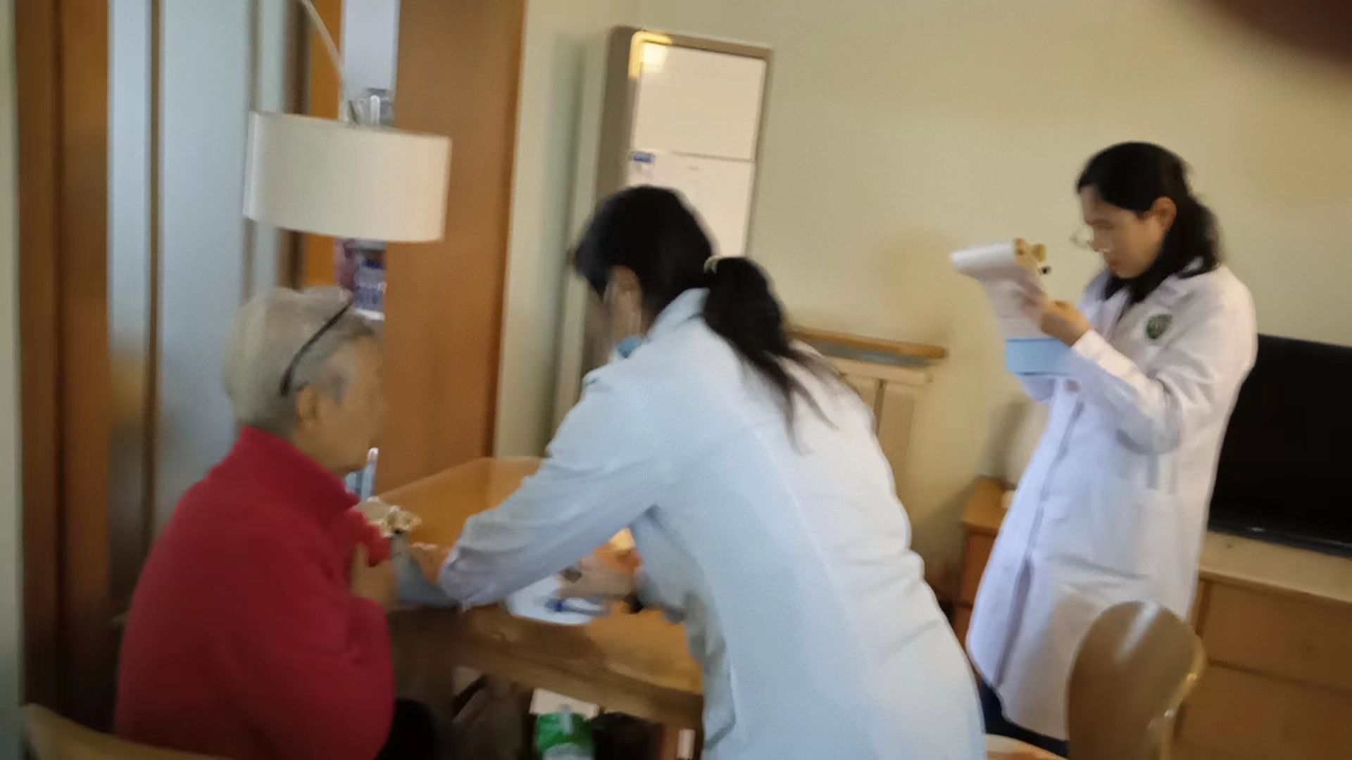 活动中,支部党员充分发挥先锋模范作用,带头深入高龄教师家中。细致询问老人们的身体状况、生活习惯和用药情况,耐心为老人测量血压、血糖,进行心肺听诊等基础检查。“作为一名党员医生,能够用专业知识为高龄教师解决实际困难,让我深刻体会到‘服务先锋’的责任与光荣。”支部党员汪医生在访视后感慨道。针对患有慢性病的教师,党员们格外用心,不仅提供专业的用药指导,还悉心传授如何通过饮食调节、适度运动等方式改善健康状况。